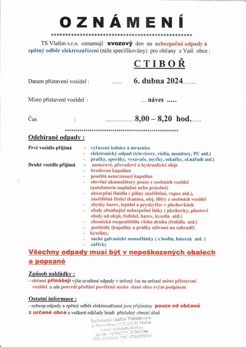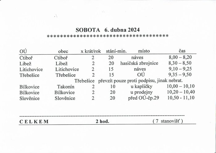 6.4.2024 na návsi od 8.00 - 8.20 hod.