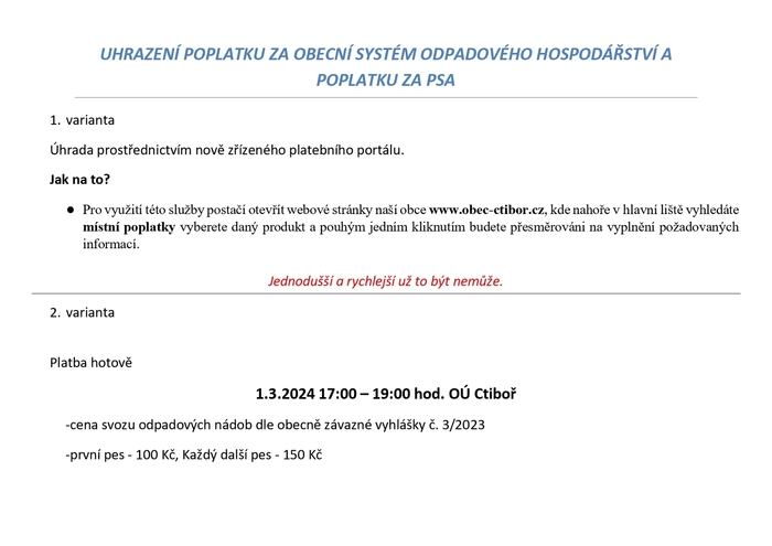 Úvod > Aktuality > Uhrazení poplatku za obecní systém odpadového hospodářství a poplatku za psa