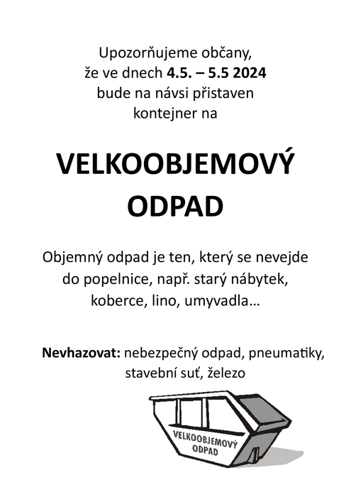 Nevhazovat: nebezpečný odpad, pneumatiky, stavební suť, železo